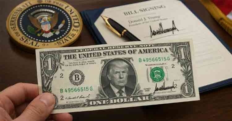জানানো হয়েছে, ট্রাম্পের স্বাক্ষর অর্থমন্ত্রী স্কট বেসেন্টের স্বাক্ষরের পাশাপাশি থাকবে। বিভাগটি বলছে, যুক্তরাষ্ট্রের ২৫০তম প্রতিষ্ঠাবার্ষিকী উপলক্ষে এই ব্যতিক্রমী পদক্ষেপ নেওয়া হচ্ছে।